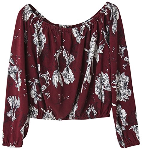 -. Title : オフショルダー トップス ブラウス 花柄オフショルトップ 肩出し 秋 トレンド レディース フリル肩開き 長袖 シフォン 冬限定