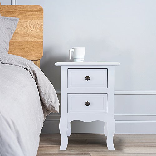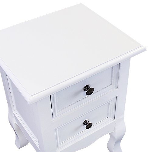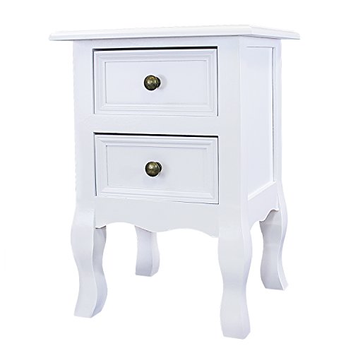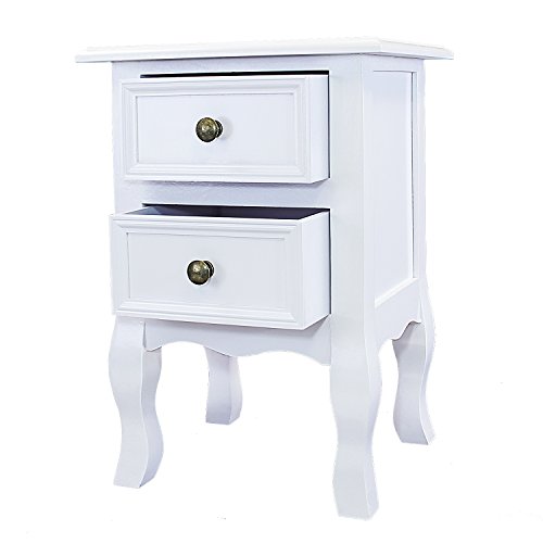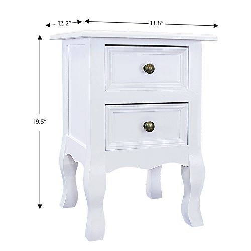 DL-Furniture Fully Assembled 100% Solid Wood British Style Tea Stand/Night Stand 2 Drawer Storage Shelf Organizer | Finish: White