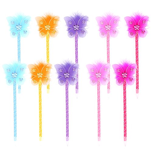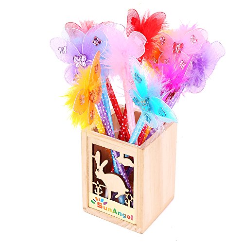 SunAngel Butterfly Style Feather Pens, 6 Color, 0.5mm Blue Ink ,Pack of 12