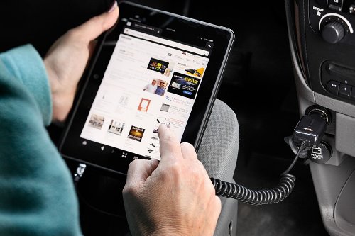- Feature : Charger works with most devices with a micro USB connector including fire Phone, Samsung Galaxy and HTC One products / Charges through your car's DC adapter / Delivers high-speed charging with 2.1 amp output / Cable measures 4.9 feet long (when uncoiled) / Ships in certified frustration-free packaging
