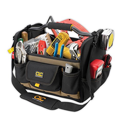 The CLC Custom Leathercraft 20in. 21-Pocket Open Top Soft Sided Tool Box is designed with a wide open main compartment to fit large tools. Soft-sided bag features 27 multi-use pockets to organize a wide range of tools and accessories. Includes a removable metal frame partition that slides into place to customize tool bag to fit your storage needs. Has a plastic cut-resistant fiber liner reinforced internal pocket for utility knife or other tools. Made of rigid structured polyester fabric. Sturdy metal handle with molded foam grip for easy carrying. Padded adjustable shoulder strap. Pockets Included (qty.): 27, Material Type: Polyester, Straps (qty.): 1, Organizer Type: Bag, Strap Type: Shoulder, Dimensions L x W x H (in.): 20 x 11 x 11Feature