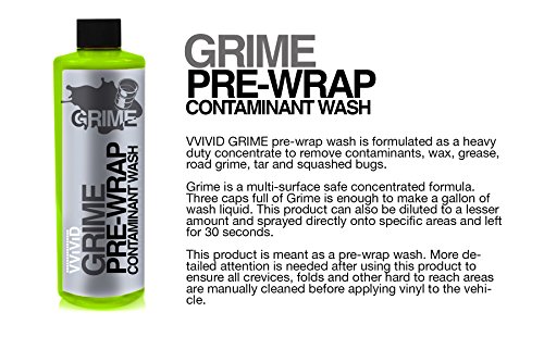 Studio : VViViD Publisher : VViViD Product Description VViViD Grime Pre-Wrap Contaminant Wash is formulated as a heavy duty concentrate to remove contaminants, wax, grease, road grime, tar and squashed bugs! Grime is a multi-surface safe concentrated formula. Three caps full of grime is enough to make a gallon of wash liquid. This product can also be diluted to a lesser amount and sprayed directly onto specific areas and left for 30 seconds for a deeper clean. This product is meant as a pre-wrap wash. More detailed attention is needed after using this product to ensure all crevices, folds and other had to reach areas are manually cleaned before applying vinyl to the vehicle. 0