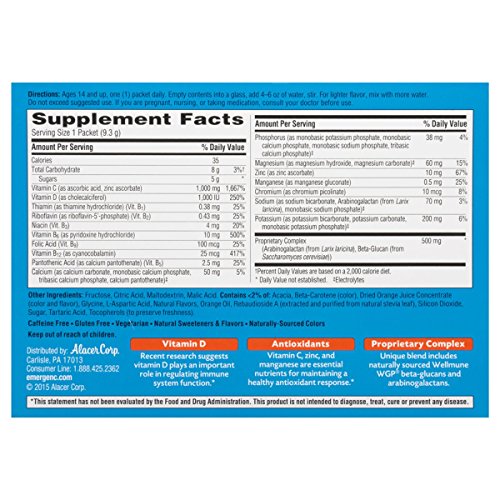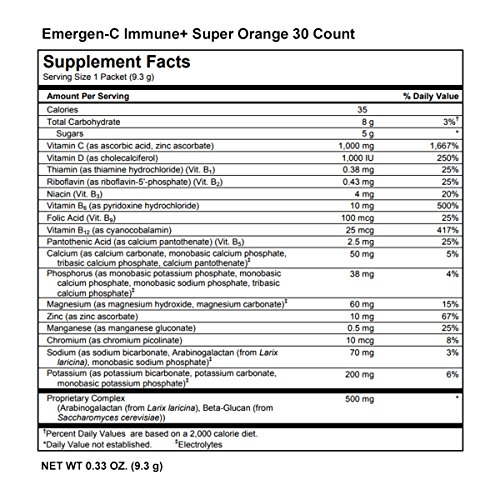 Includes 30 individual serving-size packets (0.33 oz. each) of Emergen-C Immune+ Super Orange flavor powder drink mix
