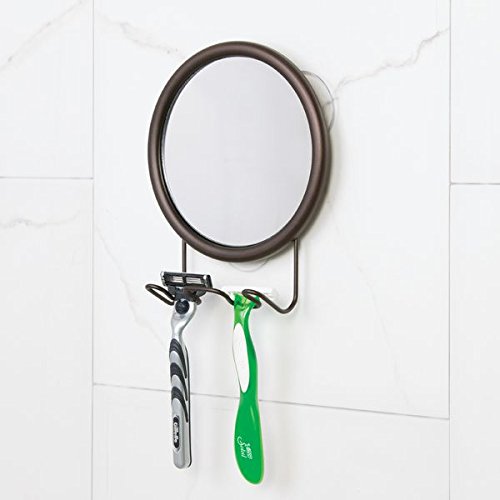 mDesign Suction Shower Shaving Mirror for Bathroom with Razor Holder - Bronze
