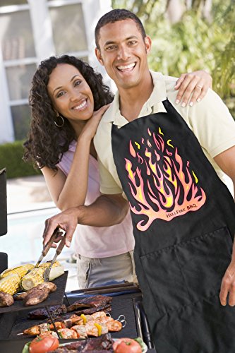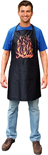 - LOOK LIKE THE PITMASTER YOU ARE whether cooking indoors or outdoors. Flames look cool and hide spills. 2 pockets are divided 1/3 2/3 for better BEER, tool, or phone stability.