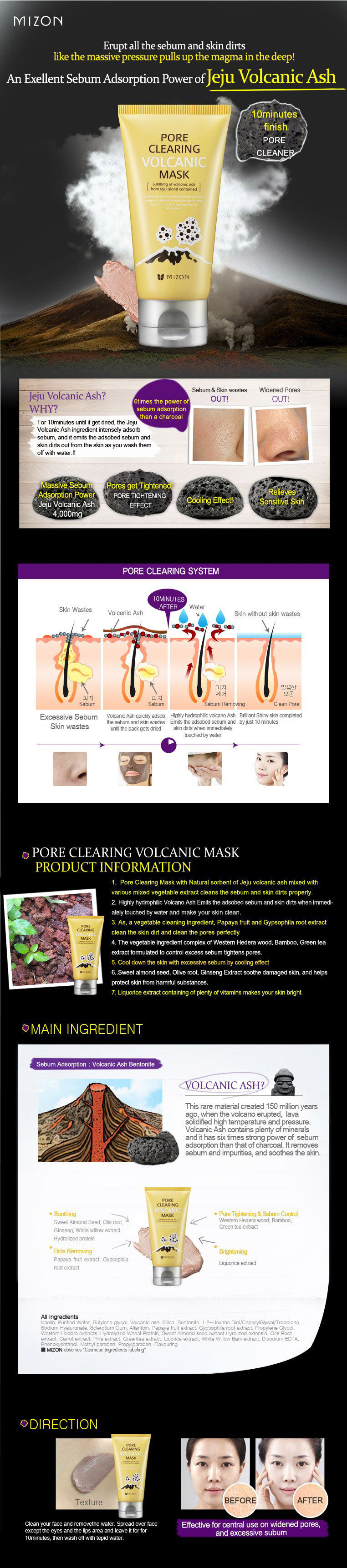 Volcanic mask gives complete cleansing for sebum and skin wastes!