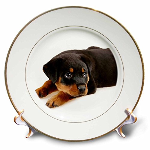 3dRose cp_4185_1 Rottweiler Puppy Porcelain Plate, 8-Inch