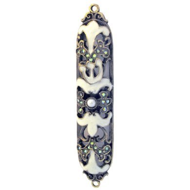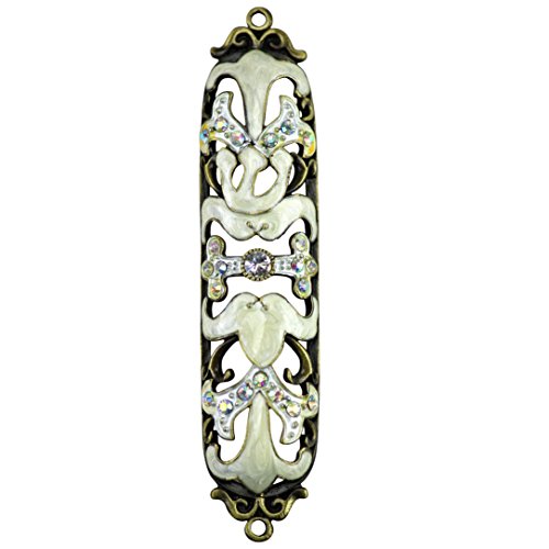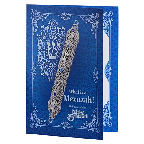 Gorgeous Enamel Jeweled Mezuzah Case Holder -Blue and white
