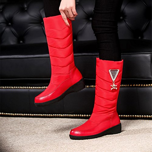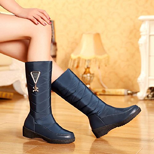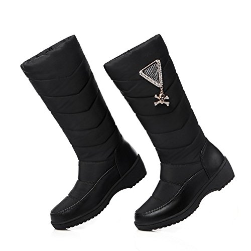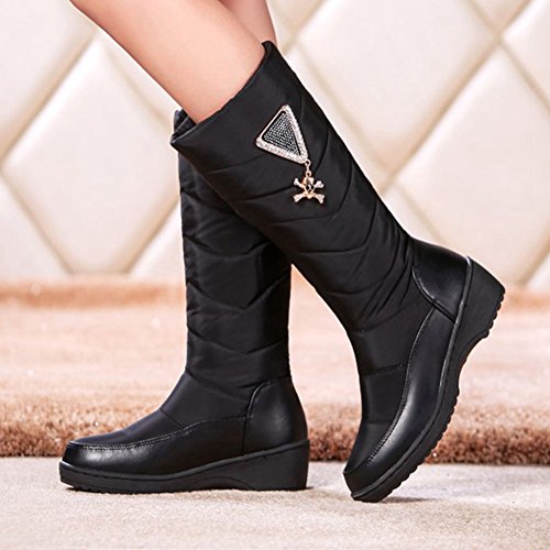 Waterproof platform measures approximately: 1.8" Mid Calf Boots Opening measures approximately: 14" Shaft measures approximately 11" from arch Full cotton lining for added warmth. Suitable for winter snow days, comfortable and stylish, keep the feet warm all-day long. The snow boots size is nomal size.If you need wear thick sock or foot have a little wide or fat, please order big one size. THANK YOU IN ADVANC! If you have any questions,weclcome to free to contact us. 0 |