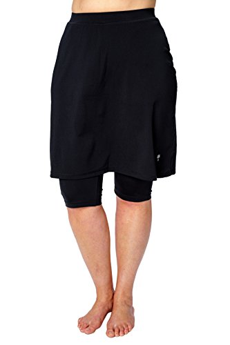 Product Description Our Inspire swim and sport skirt transcends seasons with you. With its detailed black flat flock stitching down the sides and around the hem, it draws the perfect contour, assuring that this will be the first skirt you reach for every morning. It's a great swim skirt, the perfect running/walking skirt, and the ideal leisure skirt for meeting friends. Slimming leggings slightly peep out from underneath, providing extra coverage and mobility so that you can be active in style, without a care. Crafted from 100% chlorine proof fabric, it offers UPF 50 sun protection, keeps its shape longer, is quick drying, light weight, and easy to care for. Features Internal hidden pocket for room keys or cash. This item is made in a Plus Size Full Cut: (0X -size 14/16) (1X is size 18-20) (2X is size 22-24) (3X is sizes 26-28) (4X-is size 30-32 when offered). When choosing a size, please make sure items are close fitting as the material expands slightly in the water and returns to original size when dry. 0