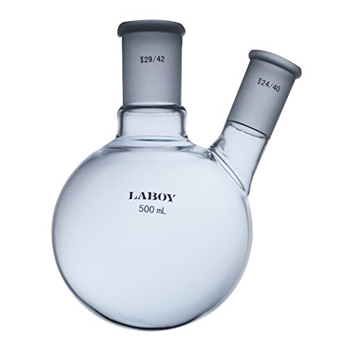 Laboy HMF011329 Glass 500 mL 2 Neck Round Bottom Boiling Flask with 29/42 Center Joint and 24/40 Side Joint Angled