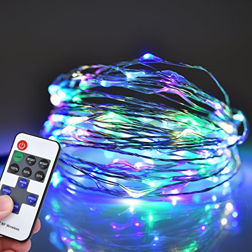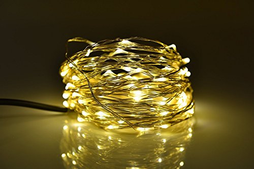 -. Feature : Light color selection: Warm White, Multi Colored / DC powered. You will never have to worry about changing batteries again. DC adaptor included. / Length of the Wire Light is 33 feet with 100 LED pcs sealed in protective plastic along the copper wire at a distance of 4 inches each. / Silver Copper Twine is soft and malleable, perfect for decorations, costumes, masks, and accessorizing for all kinds of festivities including themed parties, birthdays, Halloween and Christmas. / All products are tested and approved by Amazlab