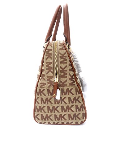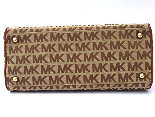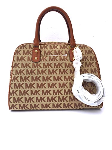 -. Binding : Apparel -. Brand : -. Color : Beige / Lage -. Department : womens -. EAN : 0885949838217 -. Feature : Authentic Signature Jacquard with Lage Leather Trim / Two Way to Wear Leather Strap : 5.5" Drop Double Handles / 22" Drop Crossbody Srap with Crib / Measures: 13.5" (W) x 10" (H) x 6" (D) / Zip Top Snap Closure. Hangtag / One zip pocket & 4 multifunction slip pockets -. PackageQuantity : 1 -. ProductGroup : Shoes -. ProductTypeName : BAG -. Title : MK Signature LG Satchel Handbag Shoulder Bag - Lage -. UPC : 885949838217