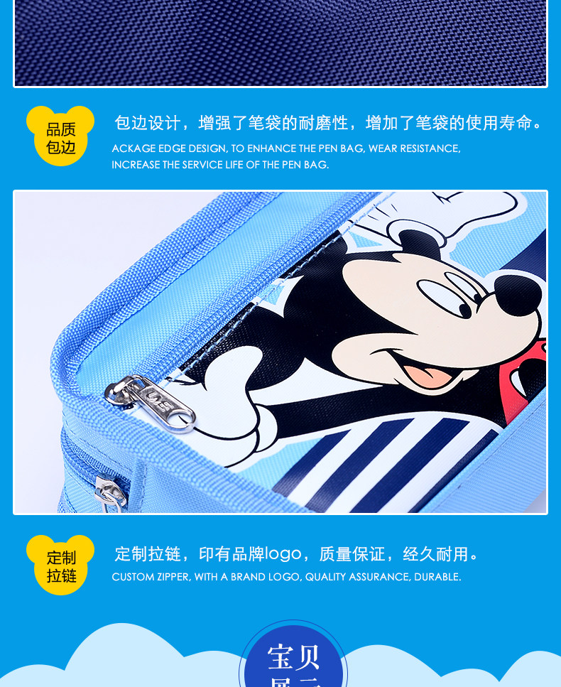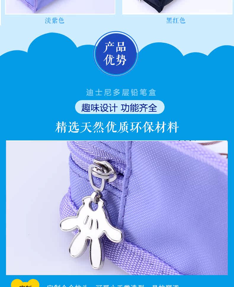 迪士尼小学生大容量铅笔袋多层笔袋男女儿童简约创意铅笔袋文具盒