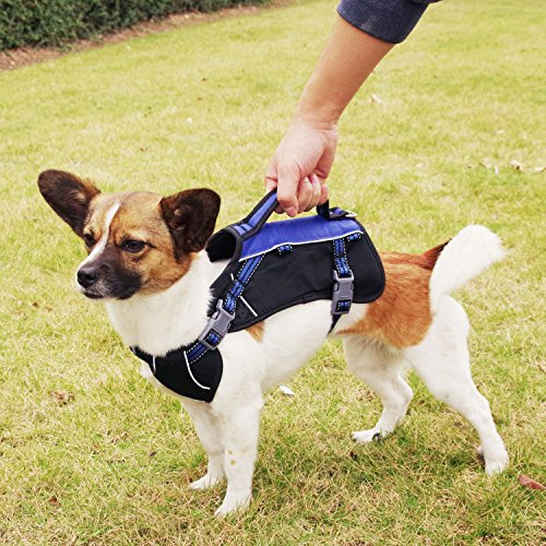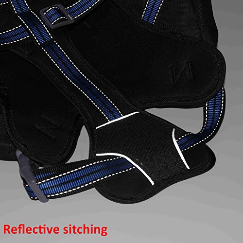 Why choose our harness backpack? - Made of 600D high density NYLON OXFORD,both breathable and wear-resistant,and the widened and padded vest harness specially offers comfortable wearing and further protection for dog's skeletal development - Waterproof Oxford Material,durable,scratch-resistant polyester material outer layer,lightweight sandwish mesh soft lining,can protect the hiking necessities even in rainy day - 3M Reflective Stripe and Leash,enhance the visibility of your dog in dark,keep your dog safe - Adjustable Neck Girth,fit dogs of different bodily shape - Proper Control,the long leash can reduce the walking limitation,while the handle on top can restrain your dog at your side when your dog come across dangerous