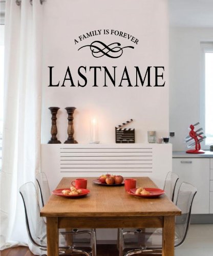 -. Binding : Kitchen -. Brand : Enchantingly Elegant -. Feature : This vinyl decal sticker says: A family is forever. Includes a last name of your choice. Please email name to me as soon as you purchase. / Overall size is 34" wide by 17" high. (size can be reduced upon request) Color shown: black matte / See pictures for more color choices and email color choice to me if you want one other than the color shown. / Easy to apply, comes with instructions. Made in the USA with high quality removable vinyl. Looks painted on. -. Label : Enchantingly Elegant -. Manufacturer : Enchantingly Elegant -. MPN : fa045 -. PartNumber : fa045 -. ProductGroup : Home -. ProductTypeName : HOME -. Publisher : Enchantingly Elegant -. Studio : Enchantingly Elegant -. Title : Custom Name A Family Is Forever Vinyl Decal Wall Art Words Sticker Lettering Wedding Gift Home Décor