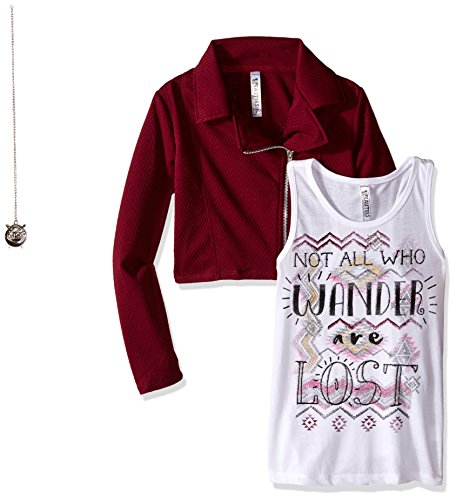 Beautees Big Girls' 2 Pc. Solid Quilted Moto Jacket With Screen Tee, Lost, Wine, X-Large