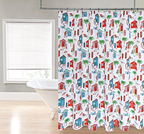 Regal Home Collections Beach Cabana 70" W X 72" L printed Fabric Shower Curtain, Spice/Multi