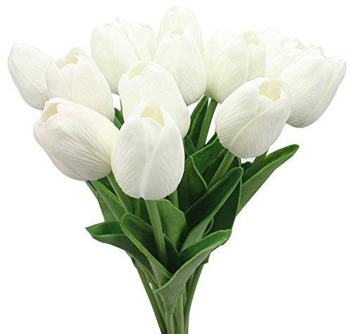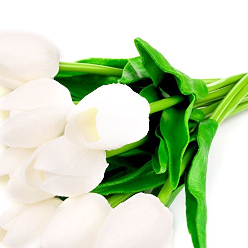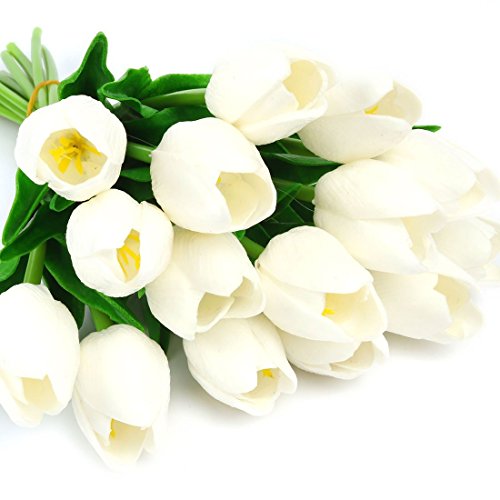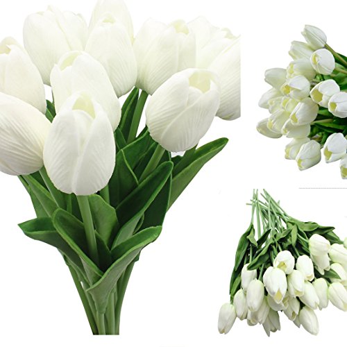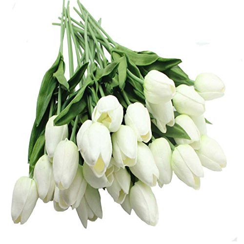 20pcs Real-touch Artificial Tulip Flowers,Muyee Fake flowers Home Wedding Party Decor (White)