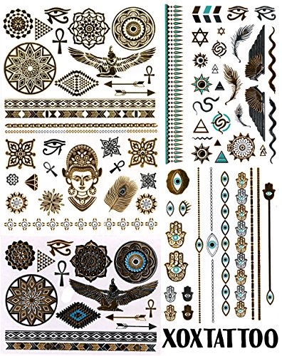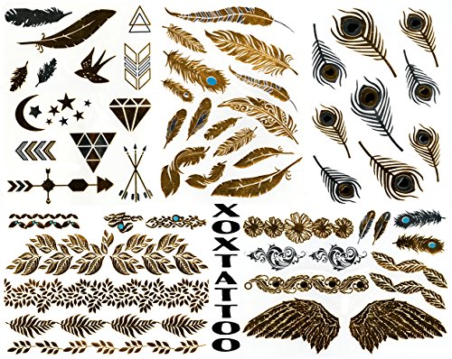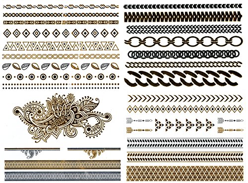 Set of 5 sheets of Metallic Temporary Tattoos.