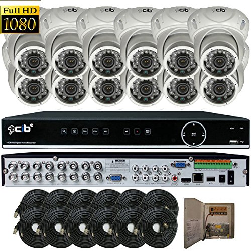 CIB Security H80P16K2T03W-12KIT 16CH 1080P Video Security DVR, 2TB HDD & 12x2.1-MP 1920TVL Night Vision Camera, White