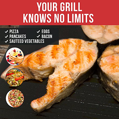 - NEVER BBQ ON A DIRTY GRILL AGAIN - Simply lay the Non Stick BBQ Grill Mats over the grate, griddle or burner and place your chicken, steak, fish, bacon, eggs, burgers, vegetables, pizza, ribs, turkey, kebabs or whatever you wish to grill directly on the mat. Throw away that old barbecue grill brush.