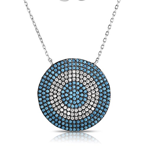 -. Binding : Jewelry -. Brand : Unique Royal Jewelry -. Color : Silver/Turquoise -. Department : womens -. Feature : 925 Solid Sterling Silver Nano Pendant with Turquoise and Cubic Zirconia Cluster Pendant Necklace. / Necklace is adjustable to length of 16", 17" or 18" to accommodate Comfort and personal style. / Chain is 1.2mm Cable Link. Total Weight of Sterling Silver is 5.0 gr. / 3.50 Carat Total Weight of Combined 280 stones pave set. / Elegant Gift Box Included. -. Label : Unique Royal Jewelry -. Manufacturer : Unique Royal Jewelry -. ProductGroup : Jewelry -. ProductTypeName : FASHIONNECKLACEBRACELETANKLET -. Publisher : Unique Royal Jewelry -. Studio : Unique Royal Jewelry -. Title : 925 Solid Sterling Silver Turquoise And CZ Circular Nano Pendant Necklace with Adjustable Length 16"-18"
