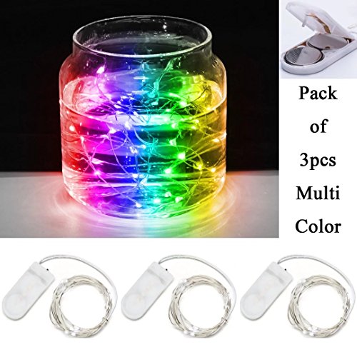 DODOLIGHTNESS Pack of 3 Set Starry String Light 20 Micro LED Extra Thin Flexible for DIY Wedding Centerpiece or Table Decorations with 2pcs CR2032 Batteries Included (3set,RGB)