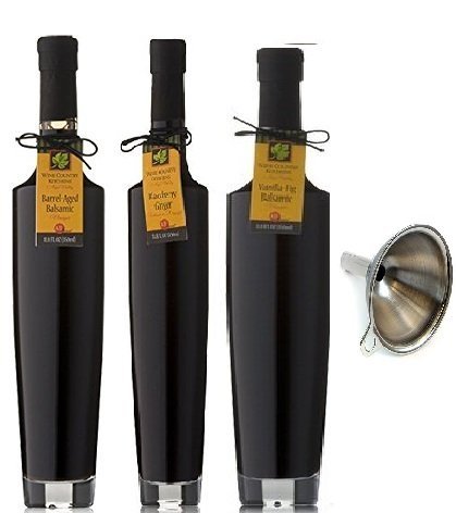 Wine Country Kitchens 3 Variety Pack Barrel Aged Balsamic Vinegar, Vanilla Fig Balsamic Vinegar, Blackberry Ginger Balsamic Vinegar 11.8 fl oz....