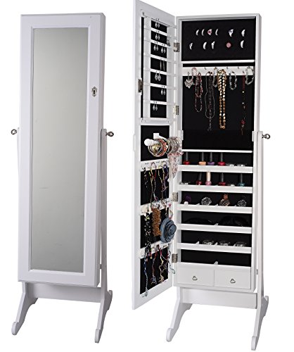 -. Title : BTEXPERT Stylish Wooden Jewelry Armoire Cabinet Stand Organizer Storage Box Case Cheval Mirror Rings White