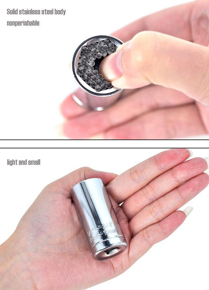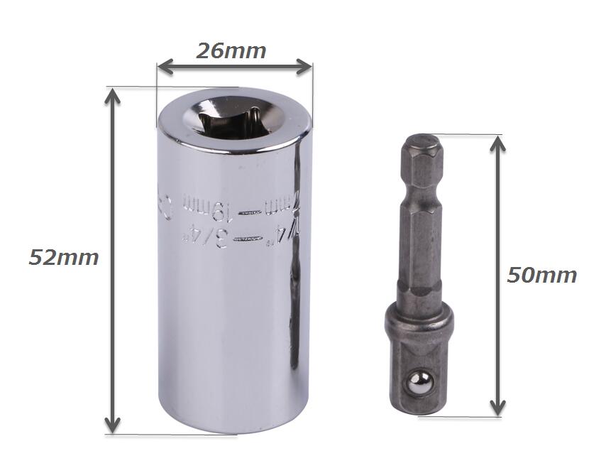 ・ユニバーサルソケットは新型六角形芯のデザインを採用し、固体鋼鉄を素材としています。ソケット内部の54本のスチールピンは、s2合金鋼 で作られています。 この種のスチールピンは、高硬度.スクリューの損傷を減らすためのヘッドボンディングがよく、高速穿孔作業中に六角シャンクが剥離するのを防止しています。