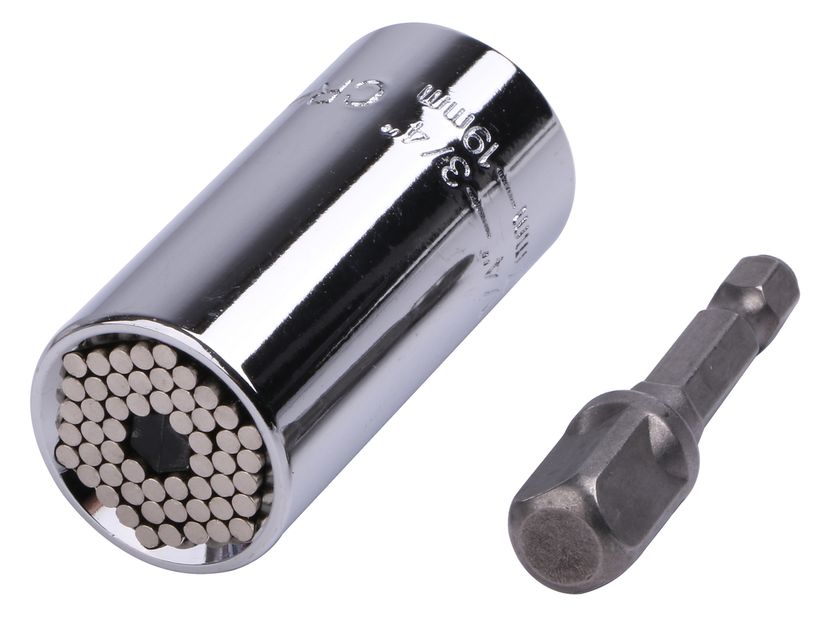 ナットやフックの形状に自動で合せて、どんなネジでも簡単に締めたり緩めたりでき、多数のソケットを替えずに作業ができ、時間短縮と効率アップに繋がります。スペース節約にもなりますので工具箱がスッキリできます。