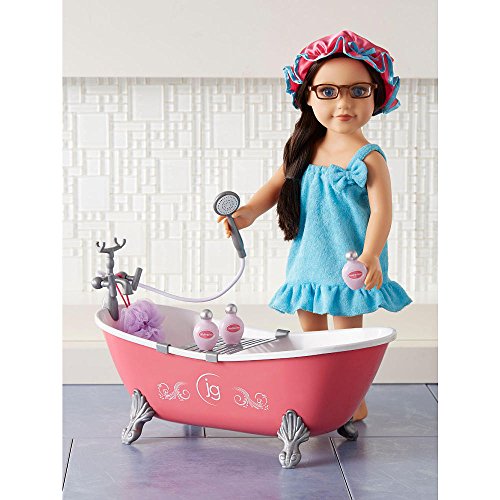 - Includes 3 bottles of pretend bath gel, shampoo and rinse, 1 bath puff, 1 lovely spa wrap and 1 shower cap
