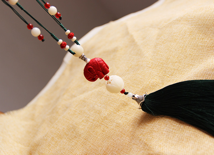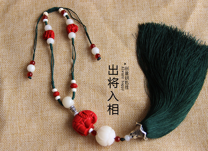 手工编织的金刚结,搭配上韵味独特的绿色冰丝流苏,
