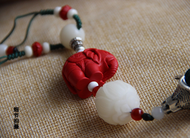 搭配:朱砂雕刻莲花,美艳可爱,三层花瓣,雕刻细致,辟邪。