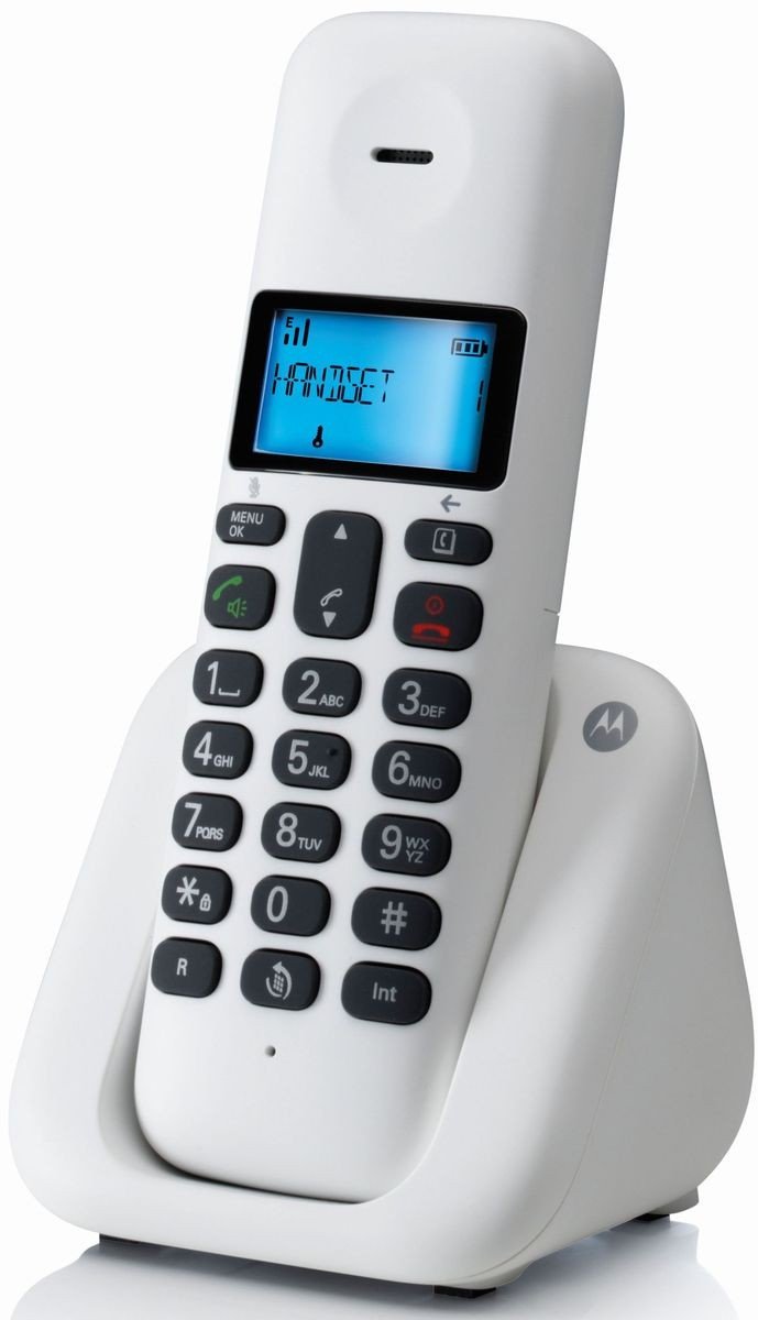The Motorola T3 is simply striking, with its clean form and extra large display. Available in beautiful and subtle colour themes, it has a black and white display with a bright blue backlight and all the essential cordless calling features you would expect from a modern cordless telephone.