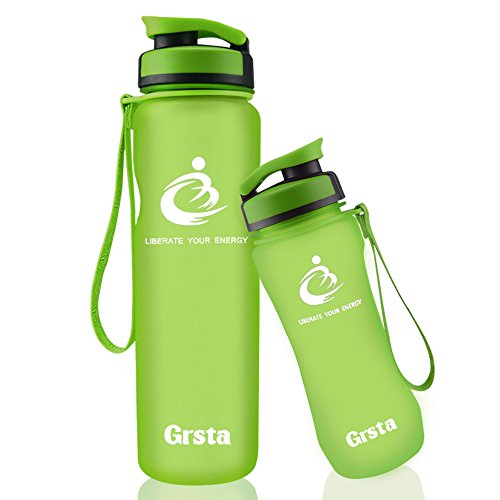 Grsta Sport Water Bottle 20oz/1L, Wide Mouth Leak Proof BPA Free Eco-Friendly Plastic Drink Best Water Bottles for Outdoor/Running/Camping/Gym w Flip Top Lid & Filter Open with 1-Click