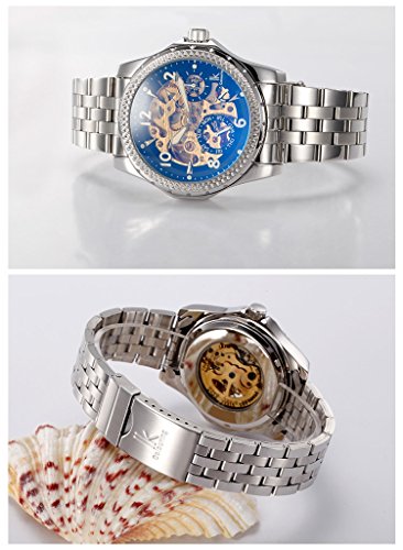 GuTe출품 스켈리턴 스테인레스 밴드 보다 고급 보다 좋은 품질 상품 유니크의 유리 멋쟁이 작고 예쁘장스럽 골드에 블랙 자동 감기 맨즈 손목시계