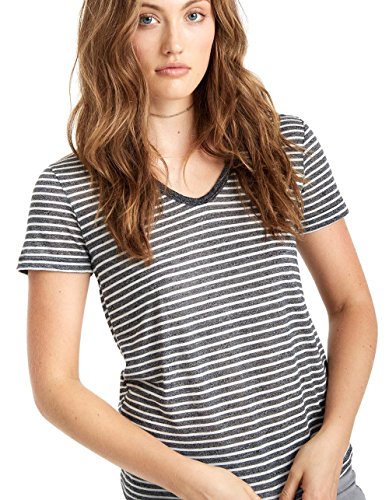 -. Title : Genetic Jeans Women's - Short Sleeve Fashion V-Neck Tee In Gray And White Stripes | Shop Genetic Denim Tees Online