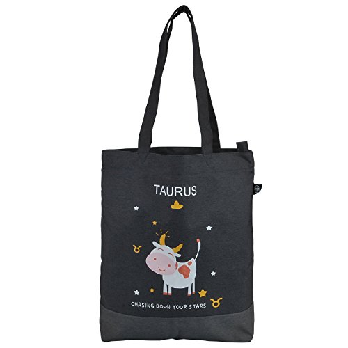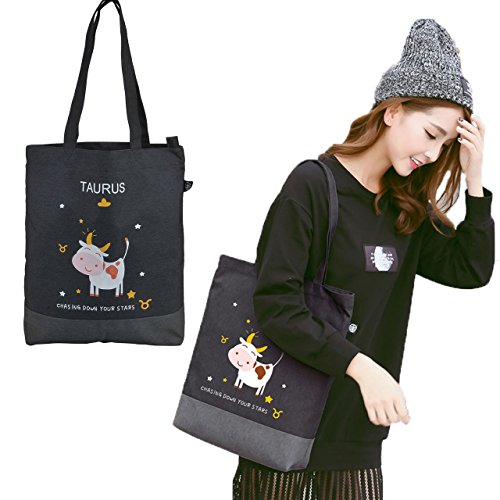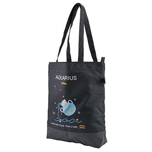 Faleto Canvas Tote Bag with Zipper Bulk Handbag-12 Constellations Zodiac Signs- Bag Shoulder Shopping Bags for Women and Kids