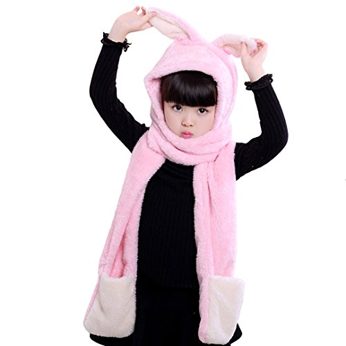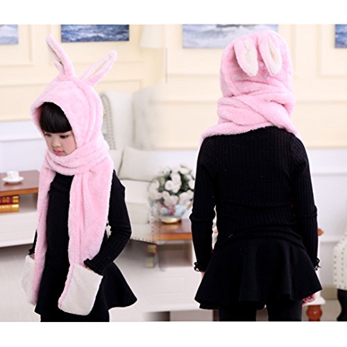 Binding : Apparel Product Description Angelara Kids Winter Soft Rabbit Long Hooded Scarf Hat Earflap with Gloves Pocket