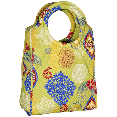 - Durable flower-designed Large Tote Bag with handles & attached zippered coin purse.
