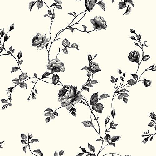 -. Title : York Wallcoverings KH7082 Kitchen & Bath Rose Toile Wallpaper, White/Black/Grey