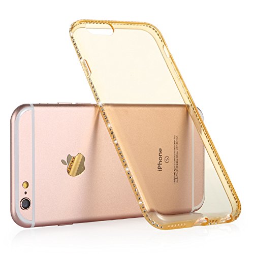 Iphone 6s Plus Case, Sincase [Ultra Thin] Soft Clear Tpu Iphone 6s Plus Skin [136 Crystals] Protective Back Bumper Cover with Bling Diamond Rhinestone Frame Slim for Apple Iphone 6s/6 5.5 (Gold)