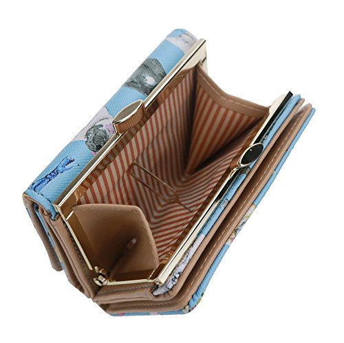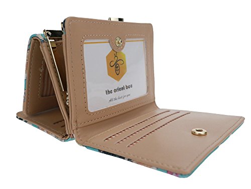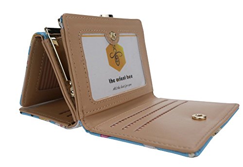 -. Binding : Apparel -. Brand : the orient bee -. Department : womens -. Feature : Front trifold structure,back bifold structure,both with snap closure / The middle is a hasp-closure pocket with sparkling golden metal frame / It features 11 card slots ,1 full length pockets for bills and notes,1 ID window and one kiss locked pocket for coins. / Suitable for both women and teen girls. / Dimensions(fold up):4.13"L x 3.14"W x 1.38"H; 5 ounces -. Model : wallet-dogtheorientbee -. ProductGroup : Apparel -. ProductTypeName : ACCESSORY -. Title : The Orient Bee Women's Mini Leather Wallet Kiss Lock Closure Bow Cat