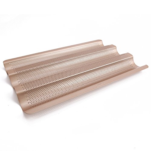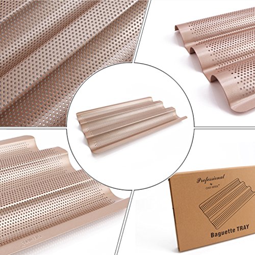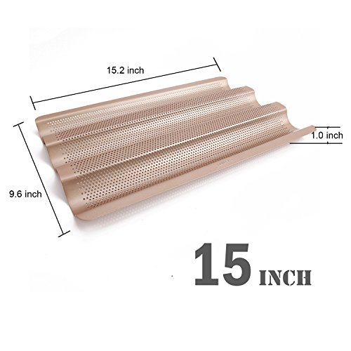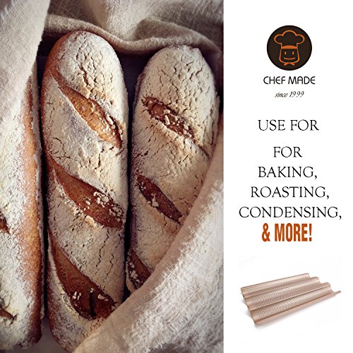 CHEFMADE 15 Inch Non-stick French Bread Pan, Heavy-duty FDA Approved, Oven Roasting Baking Baguette Mold (Champagne Gold)