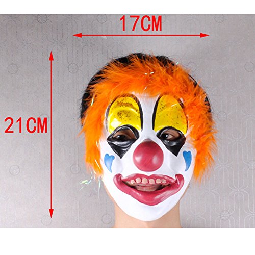 -. Feature : Comfortable and breathable, see through the mask's eye hole / Made from 100% natural imported latex, environmental and non-toxic. / You will get included: 1*mask ,.1* hair / Great for Masquerade Parties, Costume Parties, Carnival, Christmas, Easter, Halloween or any other parties / Clown mask suit for both kid and adult