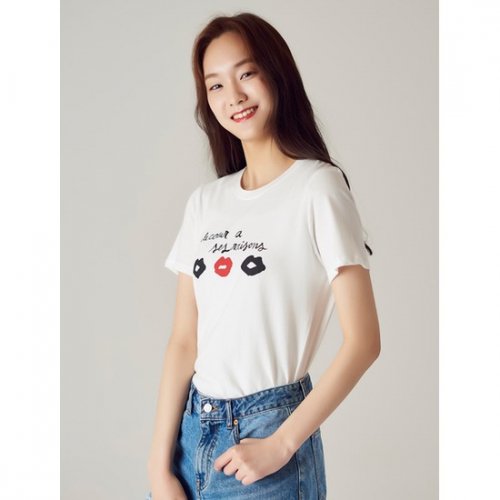 ● 베이직한 디자인에 배색 입술과 드로잉으로 스타일리시함을 더해준 티셔츠.