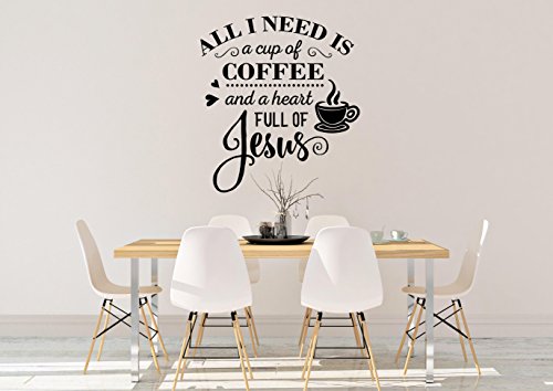 Jesus and Coffee Wall Decal - All Need Is A Cup Of Coffee Jesus Vinyl Decal Home Decor (Black,22X24 Inch)