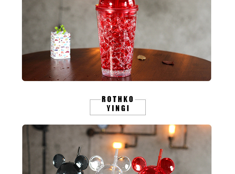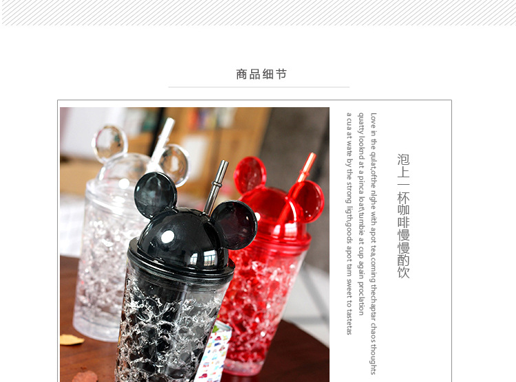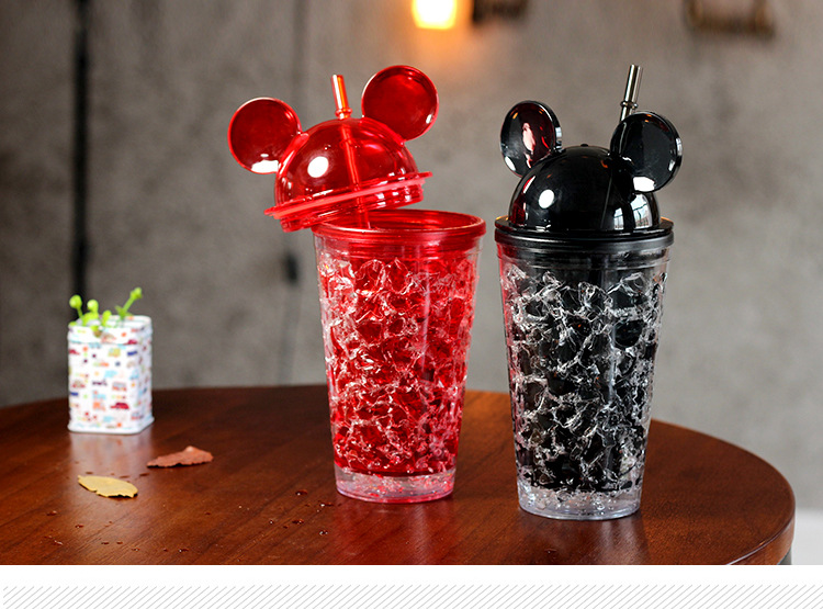 450ML卡通米奇卡通冰酷杯 带盖 带吸管碎冰创意水杯 冷饮杯